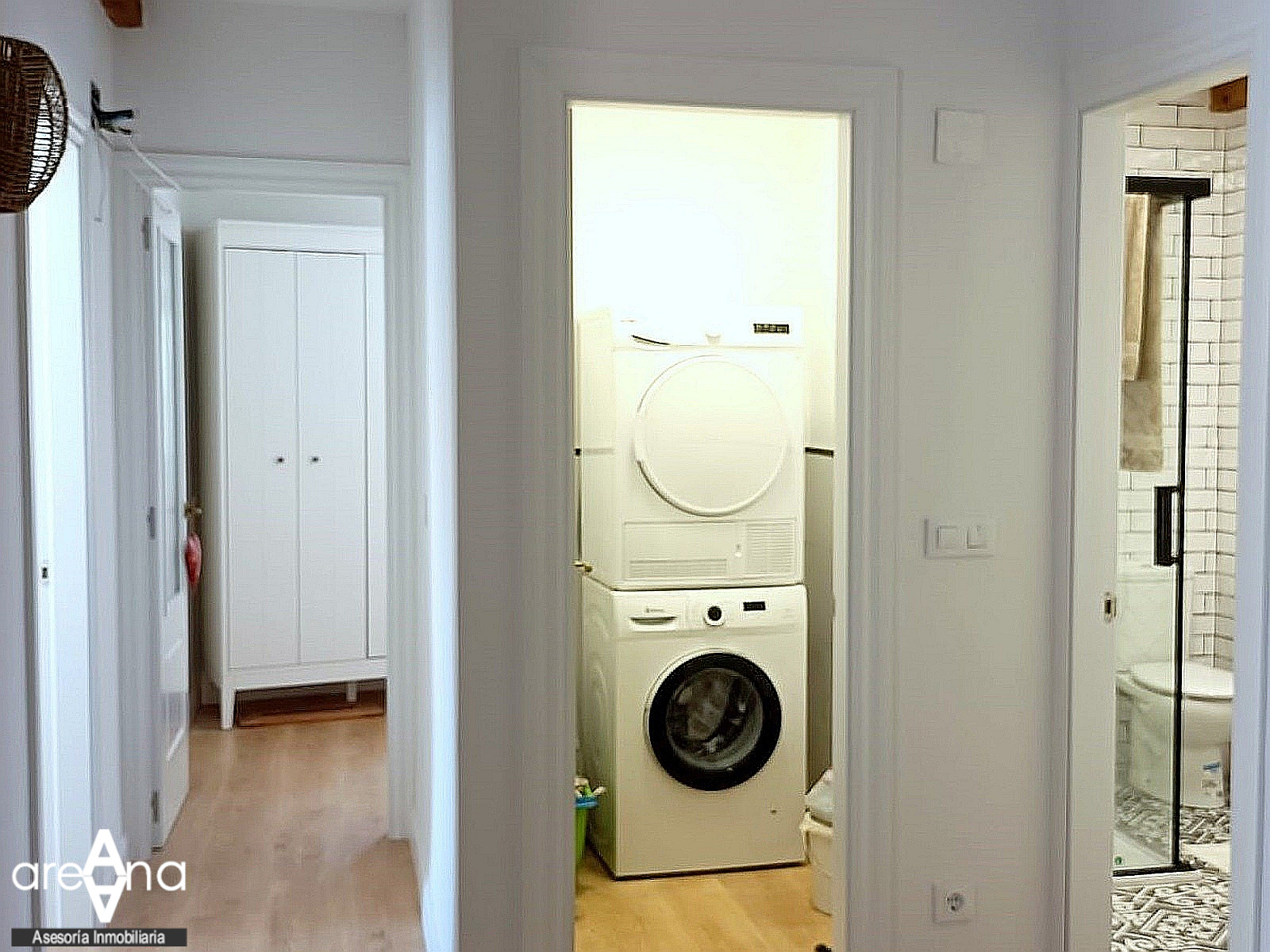Al entrar, el protagonista es un amplio y luminoso salón-comedor, con cocina americana. Hay 2 habitaciones de buen tamaño y 1 baño equipado con ducha. También dispone de una práctica despensa, donde se ubican la lavadora y la secadora.